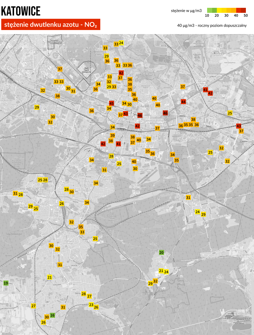 Znamy wyniki największego badania zanieczyszczeń transportowych w Polsce. Pomiary wykazały wysoki poziom rakotwórczego tlenku azotu w czternastu miastach Górnośląsko-Zagłębiowskiej Metropolii (GZM). Dane są alarmujące: w 96 proc. punktów stężenia były wyższe niż norma, którą Polska musi wprowadzić już w 2030 roku, a żaden z punktów nie spełnił poziomów wskazanych przez WHO jako bezpieczne dla zdrowia. To poważne ostrzeżenie dla lokalnych władz pokazujące konieczność podjęcia działań w śląskiej aglomeracji - komentuje Polski Alarm Smogowy.