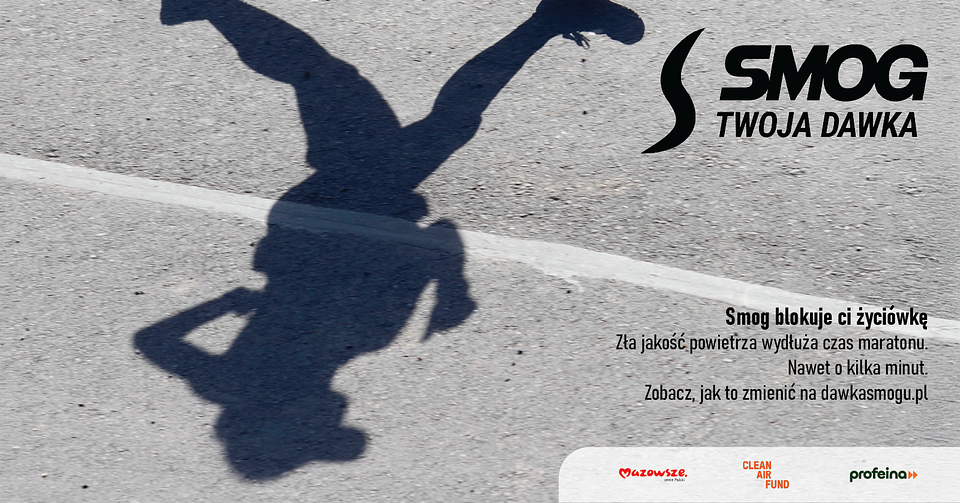 Hasła marketingowe marek sportowych zachęcają, by dawać z siebie wszystko. Nowa kampania Twoja Dawka Smogu tłumaczy, dlaczego się to nie udaje. Smog, intensywnie wdychany przez osoby aktywne fizycznie, niweczy ich starania o lepsze wyniki sportowe – podkreślają organizatorzy kampanii.